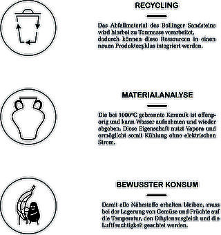 Die Firma Müller Natursteinwerk AG verarbeitet den Bollinger Sandstein und generiert dadurch täglich rund drei Tonnen Steinstaubabfall. Dieses Material lässt sich keramisch nutzen und entwickelt dabei kühlende Eigenschaften: Gemüse und Früchte können ohne elektrischen Strom gekühlt werden. Vapora nutzt bestehende Ressourcen und ihre physikalischen Prinzipien in einem ökologisch nachhaltigen Produkt.